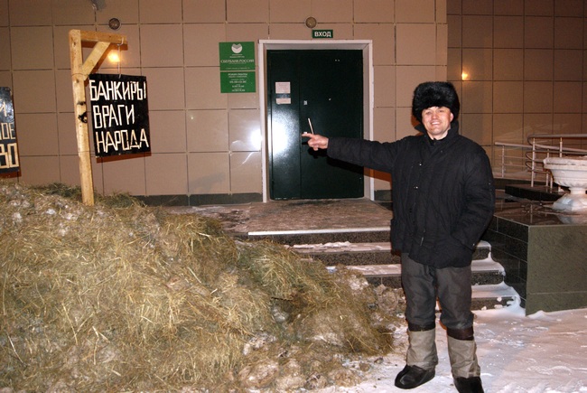 Кстати говоря, это событие, уже получившее название «навозный бунт», около отделения Сбербанка продлилось примерно час. В то время как фермер отвечал на вопросы нагрянувших интервьюеров, привлекая к себе внимание всех, кто проходил мимо, сотрудники банка не предпринимали попыток вызвать полицейских или как-то отделаться от предприимчивого заемщика.